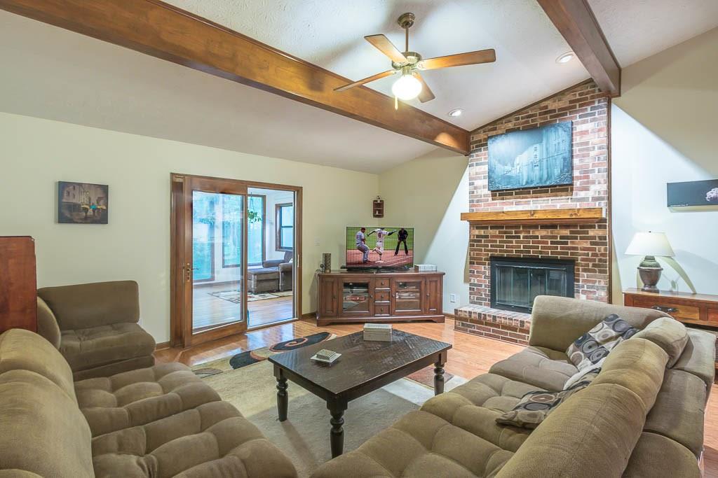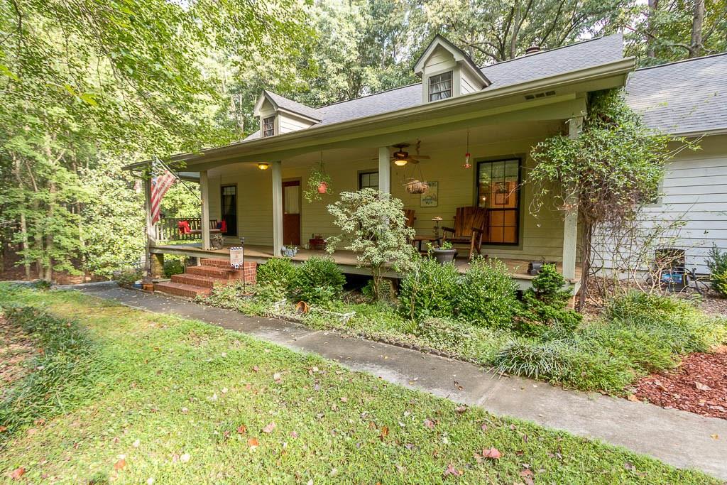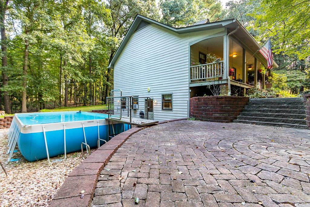 Very clean ranch style home on 9.59 acres full of mature oak & magnolia trees. Relax on the large front porch swinging on your porch swing. Exposed beams in great room. Large sunroom looks out to the woods & creek behind the house. Covered porch off master. Above ground salt water pool with new pump, salt cell, & control panel. Standalone workshop with 2 more garage spaces, separate driveway and electricity. Smart thermostat. New roof in 2014. New HVAC in 2015. All new gutters, door locks & hardware in 2017. Large finished basement not included in total sq. ftg. No hoa.